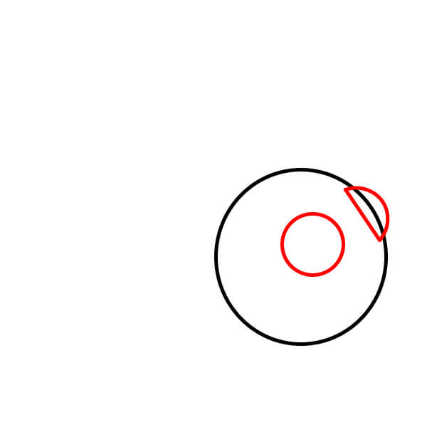 Tiếp theo vẽ hai vòng tròn lớn để tạo thành đôi mắt. Bên cạnh là hai hình lưỡi liềm để tạo mống mắt.