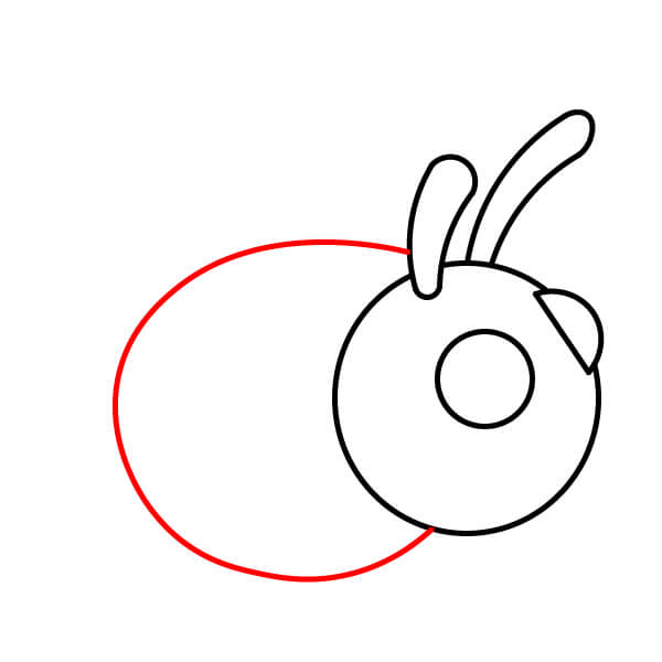 Dibuja el cuerpo de la abeja con una línea curva grande a la izquierda de la cabeza.