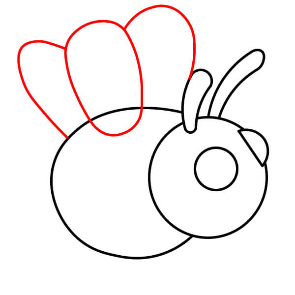 A continuación, dibuja curvas sobre el cuerpo para crear las alas de la abeja.