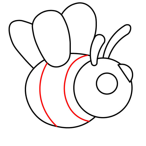 Dibuja dos líneas curvas en el cuerpo para formar las rayas de la abeja.