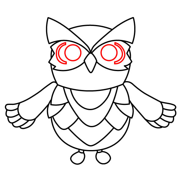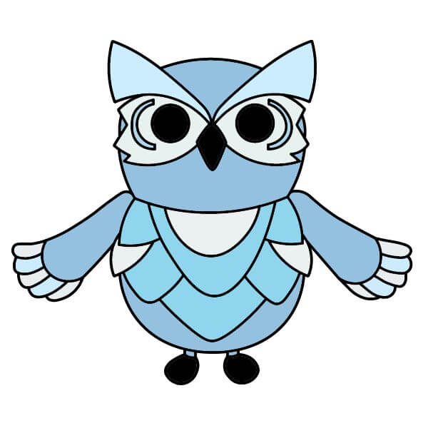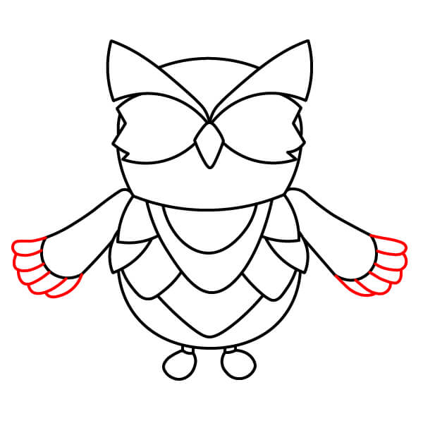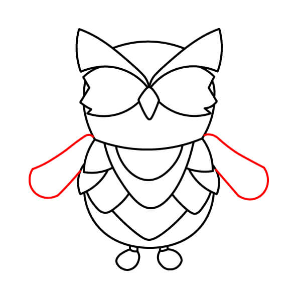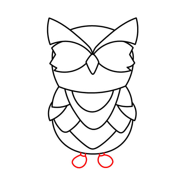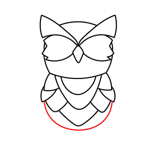 Dibuja un semicírculo debajo para completar el cuerpo del búho.