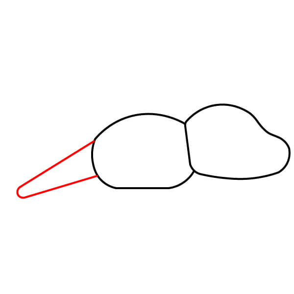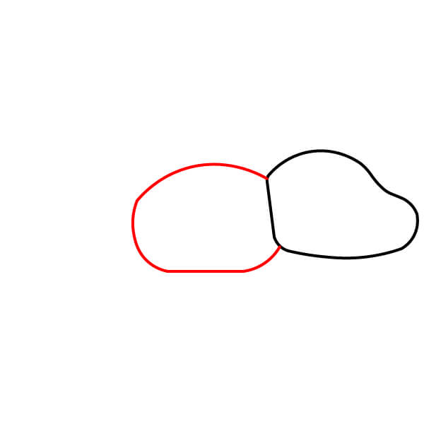 Comience dibujando una forma larga y redonda que se estrecha ligeramente hacia la derecha para formar la cabeza.