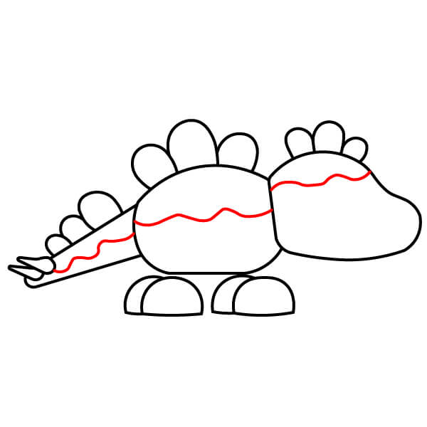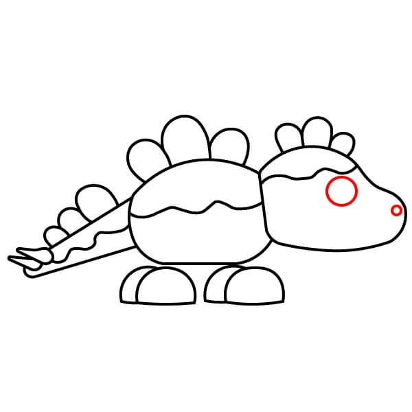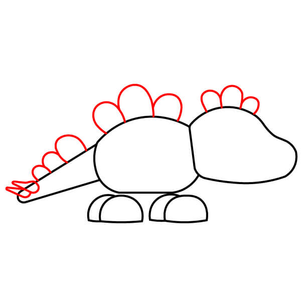 Dibuja varios círculos superpuestos a lo largo de la parte superior del cuerpo. Dibuja tres formas más pequeñas en la parte superior de la cabeza. Dibuja dos pequeñas púas puntiagudas en la punta de la cola.