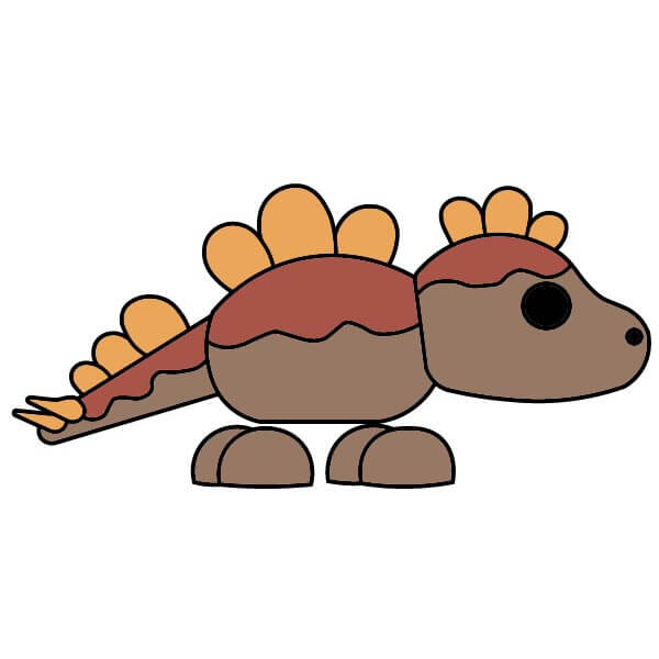 Usa marrón oscuro para la parte inferior del cuerpo, las patas, la cabeza y la cola. Usa marrón rojizo para la parte superior de la cabeza y la franja principal del cuerpo. Colorea las espinas y las marcas de la cola con amarillo. Colorea los ojos con negro.