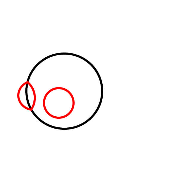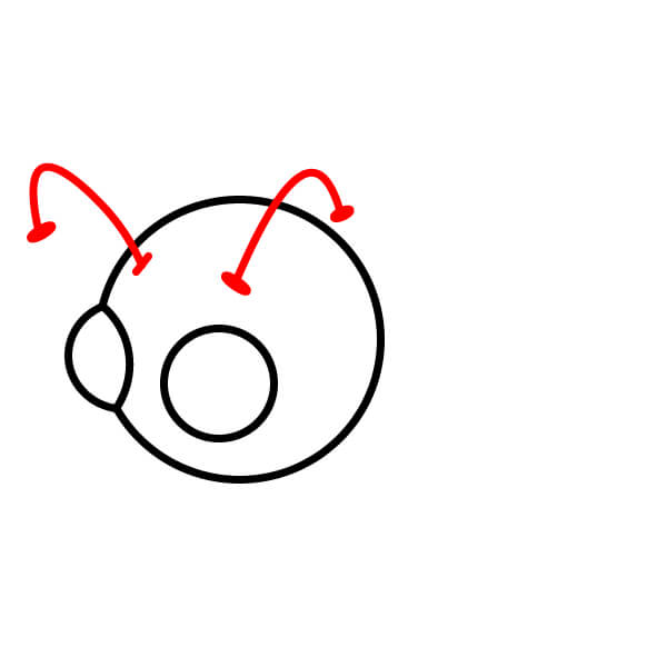 Empieza con un círculo grande. Con dos pequeños mechones de pelo a cada lado.