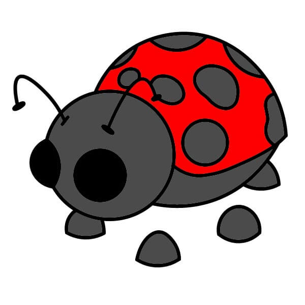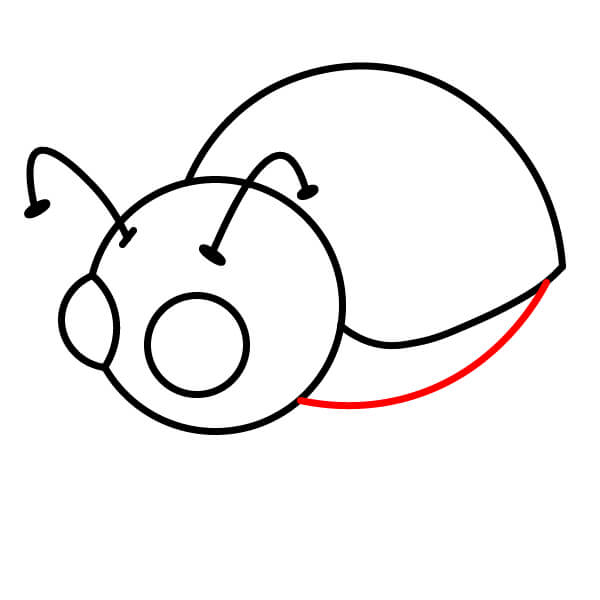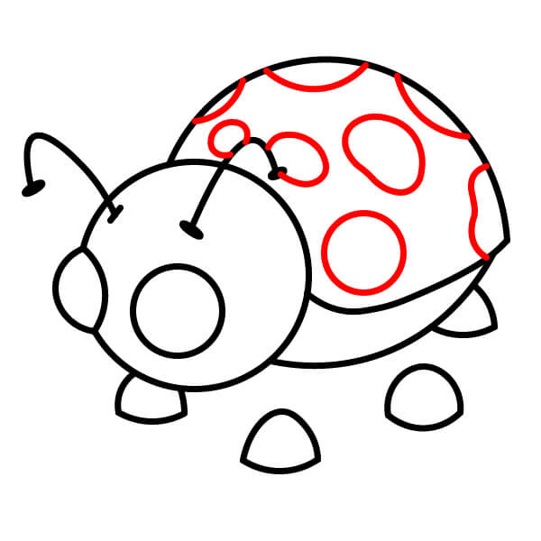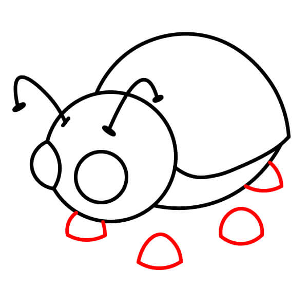 Utilice pequeños semicírculos para dibujar cuatro patas para la mariquita.