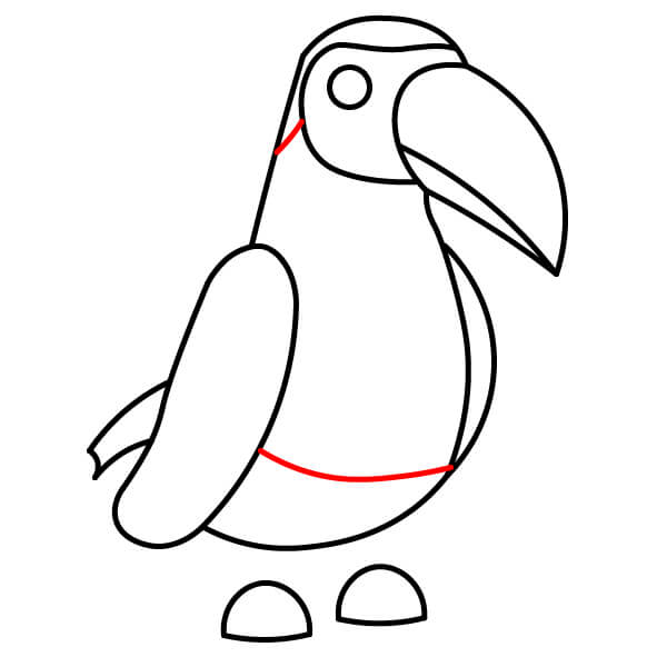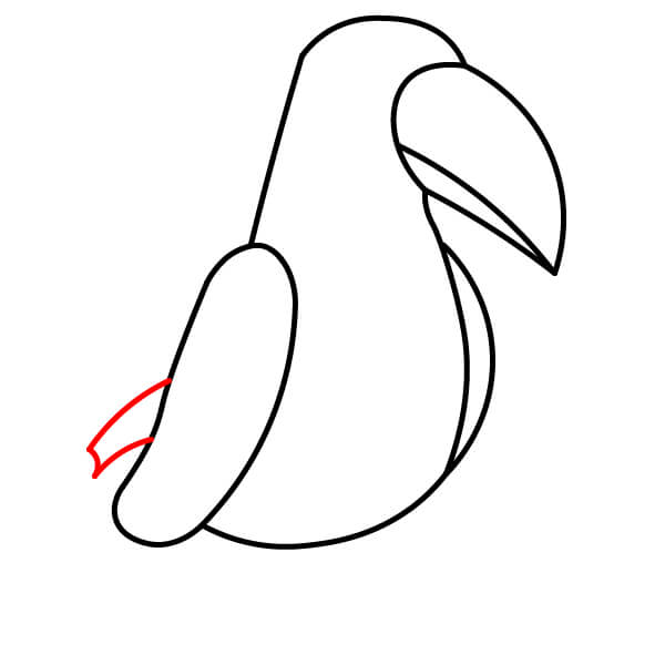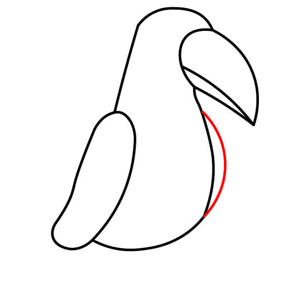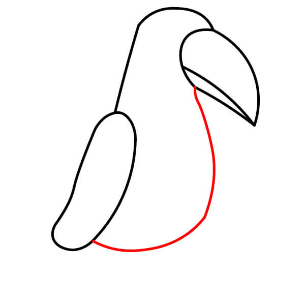 Dibuja una curva larga desde el ala hasta el pico para completar el cuerpo principal.