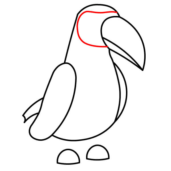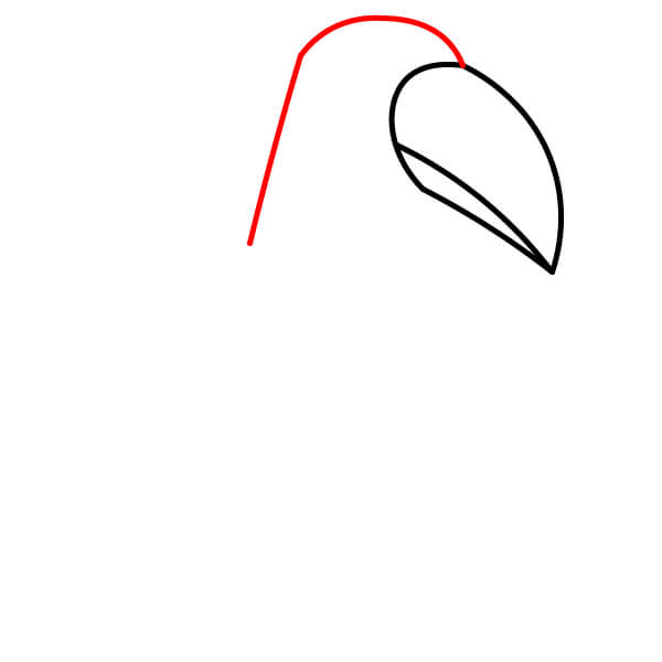 Dibuja una curva larga desde la punta del pico para dibujar la cabeza.