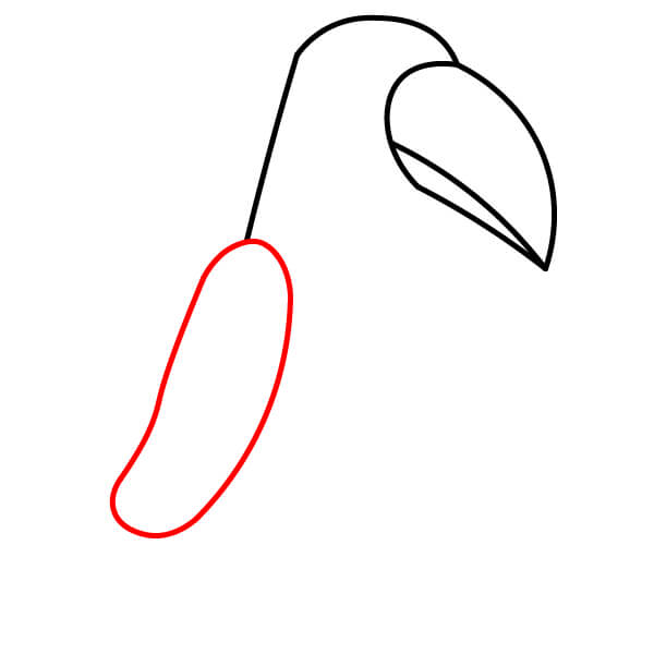 Dibuja un óvalo largo para formar el contorno del ala del pájaro.