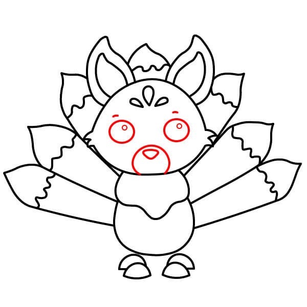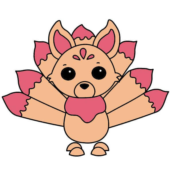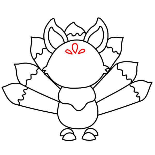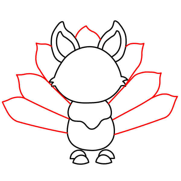 Dibuja siete colas en la parte posterior, con extremos puntiagudos. Estas colas deben extenderse como un abanico.