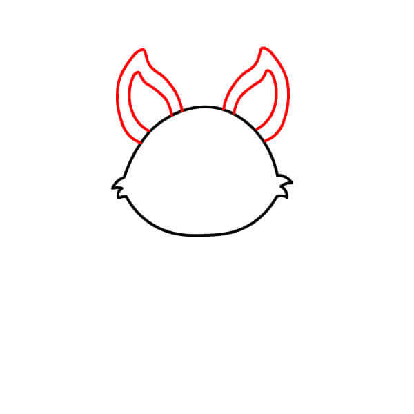Dibuja sus orejas con líneas curvas y puntiagudas en la parte superior. Una por fuera y otra por dentro.