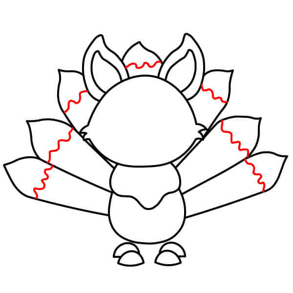 Dibuja las patas del zorro utilizando pequeños semicírculos simples.