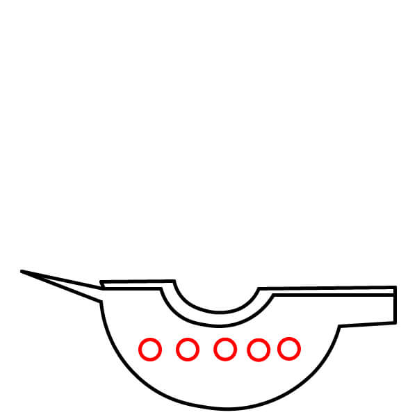 Dibuja cuatro círculos igualmente espaciados en la parte inferior del casco. Estos servirán como portillas o aberturas para los cañones.