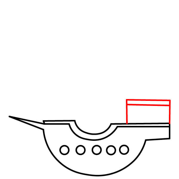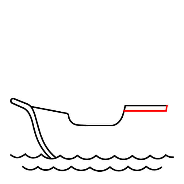 Añade una línea horizontal corta en la parte superior de la sección elevada de la popa para definir la barandilla de la cubierta superior.