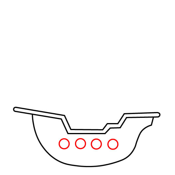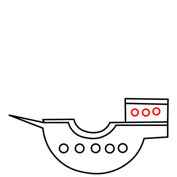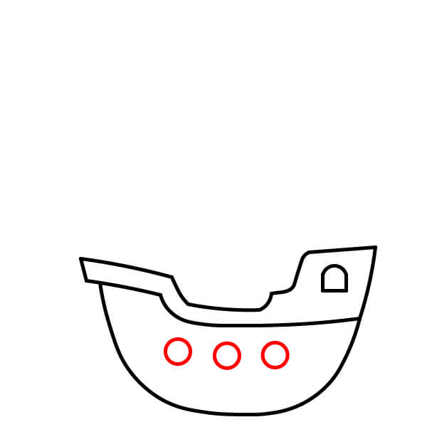 Dibuja tres pequeños círculos en fila entre las dos líneas horizontales que añadiste en el paso anterior. Estos serán las portillas o aberturas para los cañones.
