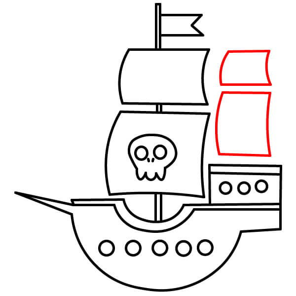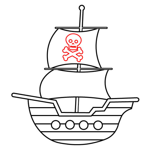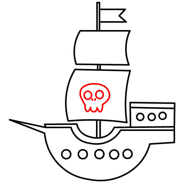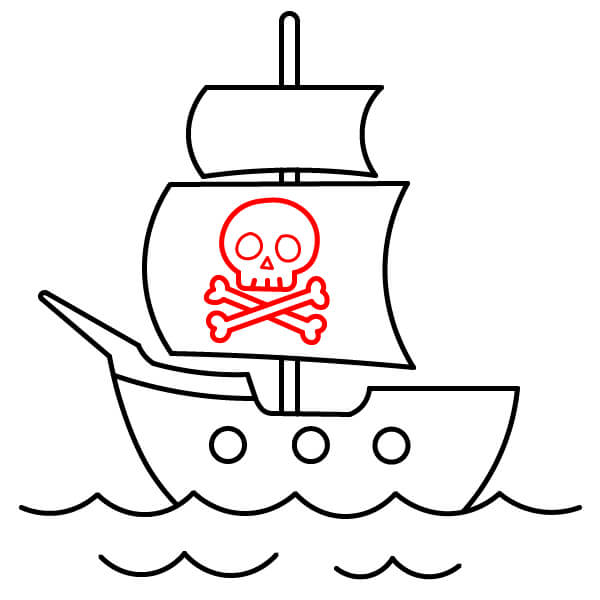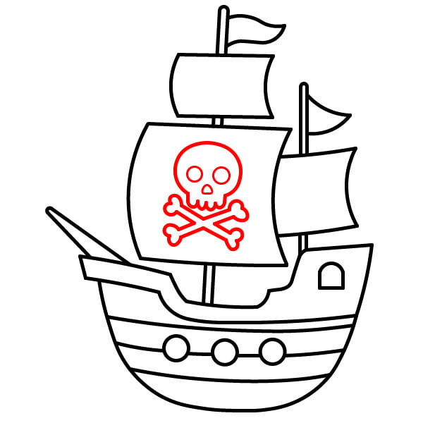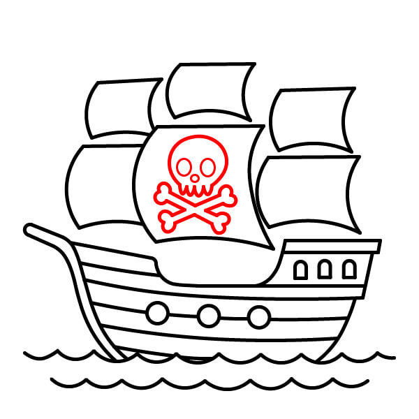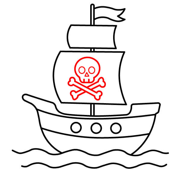 Dibuja el símbolo de calavera con huesos cruzados (Jolly Roger) en la vela superior.