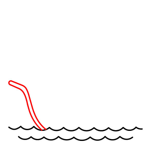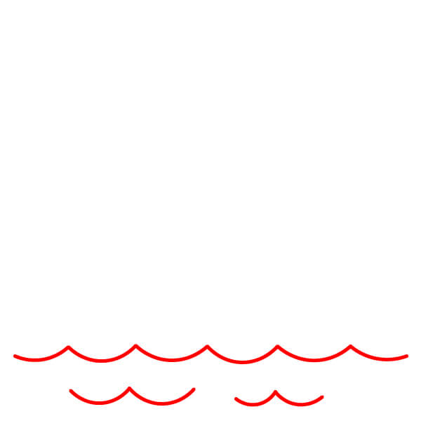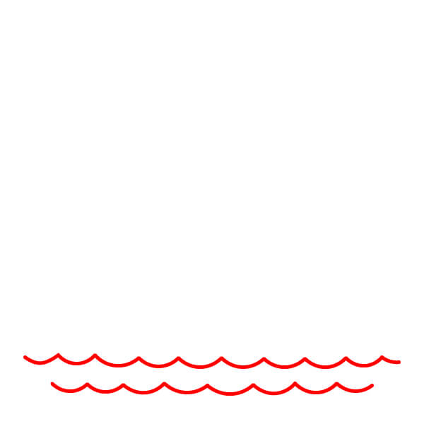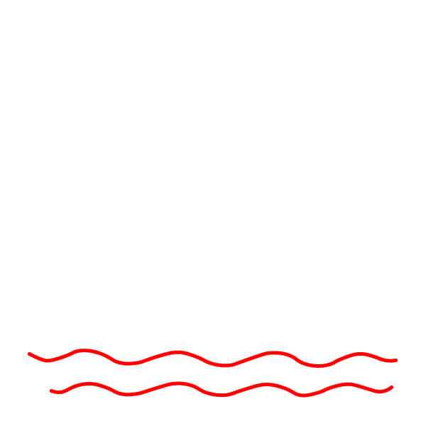 Comienza dibujando dos conjuntos de líneas onduladas en la parte inferior de tu área de dibujo. Un conjunto de olas debe ser continuo, mientras que el otro tiene un pequeño espacio en el centro. Estas líneas representan el agua.