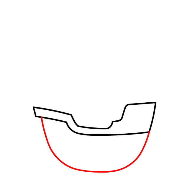 Añade la curva inferior del casco del barco. Debe ser una línea suave y redondeada que conecte la parte delantera y trasera del casco superior para formar el cuerpo del barco.