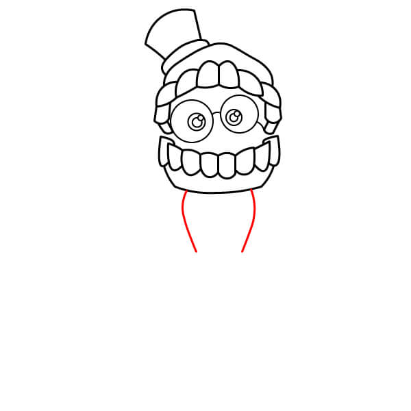 Dibuja dos líneas cortas y curvas que se extiendan hacia abajo desde el cuello para comenzar el cuerpo.