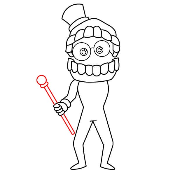 Dibuja un palo largo y recto sostenido en la mano derecha. Debe tener una pequeña bola redonda en el extremo.