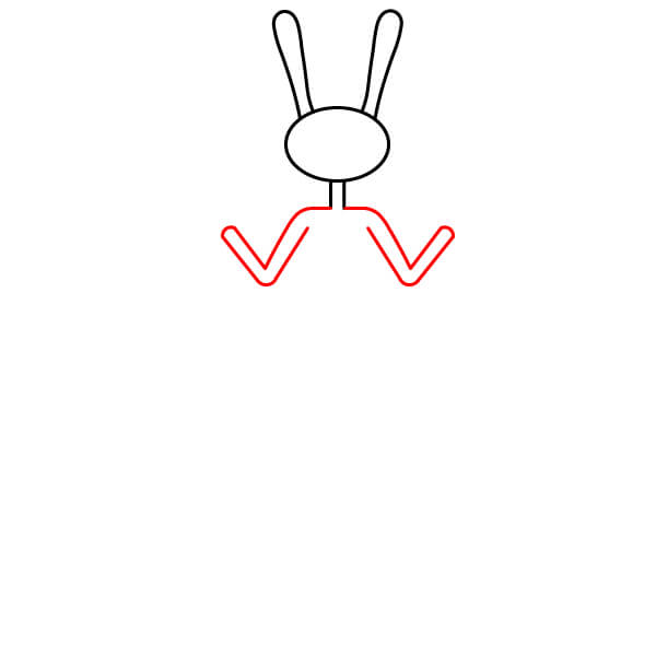Dibuja dos orejas de conejo largas y apuntando hacia arriba desde la parte superior del óvalo de la cabeza. Deben ser paralelas y ligeramente curvadas en forma de U en la parte superior.