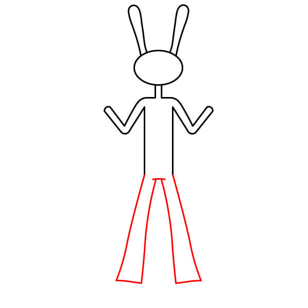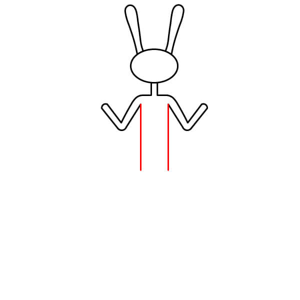 Dibuja dos líneas verticales largas y paralelas que se extiendan hacia abajo desde la forma de V de los brazos. Esto crea el torso principal de su cuerpo largo y esbelto.
