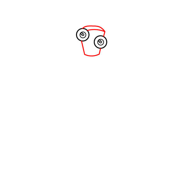 Dibuja el contorno de la cabeza alrededor de los ojos. La forma debe asemejarse a la parte superior de una pieza de ajedrez, con una base curva y bordes inclinados.