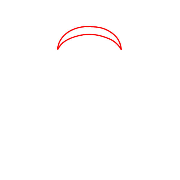Dibuja dos curvas cortas hacia abajo desde la parte inferior del contorno de la cabeza para comenzar a dibujar el cuello/cuerpo.