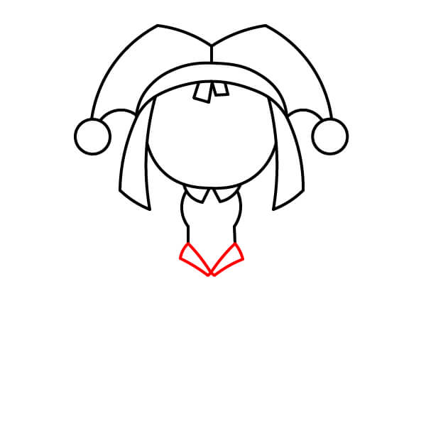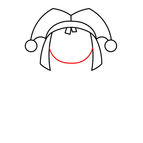 Comienza dibujando una media luna curva para la banda inferior del sombrero de payaso de Pomni.