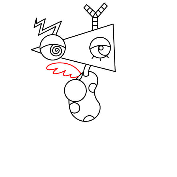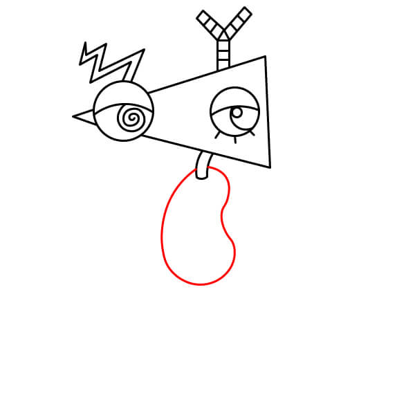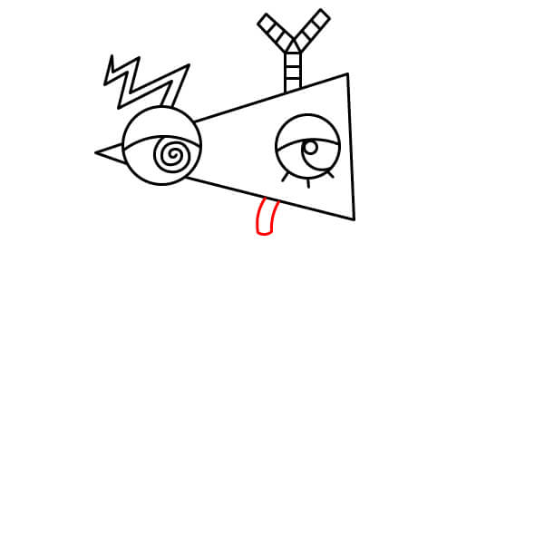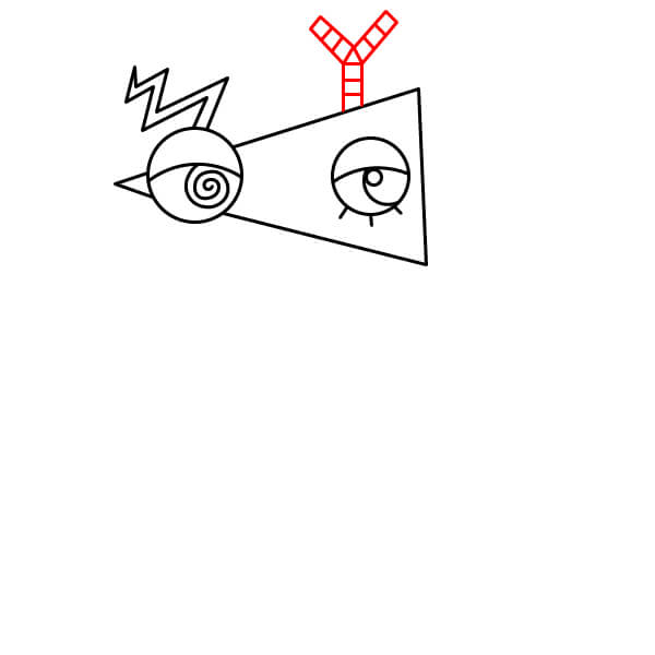 Dibuja un triángulo grande (cono) que se extienda hacia la derecha desde el primer ojo. Esto forma la base de la cabeza de Zooble.