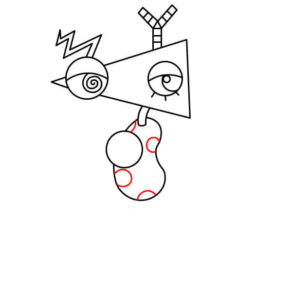 Dibuja pequeños círculos (lunares) en el segmento del cuerpo con forma de frijol para añadir textura y detalle.
