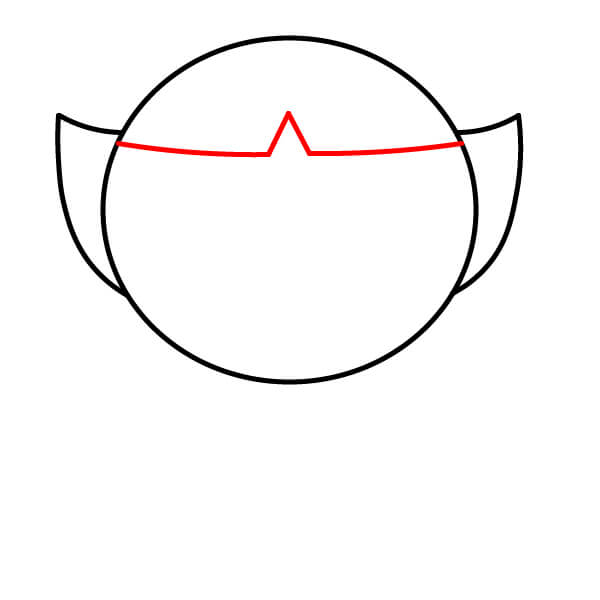 Paso 2: Agrega dos formas curvas y triangulares a cada lado de la cabeza para crear el característico corte de cabello bob del personaje.
