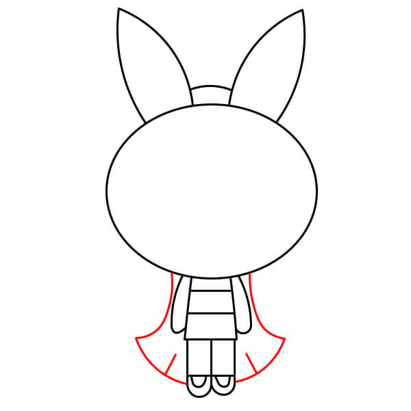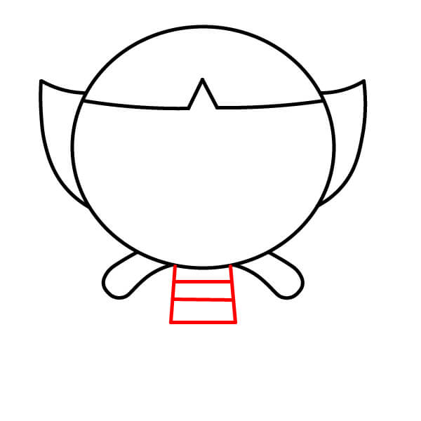 Paso 5: Dibuja dos líneas verticales que se extiendan hacia abajo desde el cuerpo y únelas con una línea curva para formar las piernas.