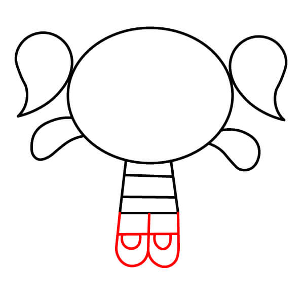 Paso 8: Agrega dos pequeñas formas curvas en la parte inferior de cada pierna para representar los zapatos.