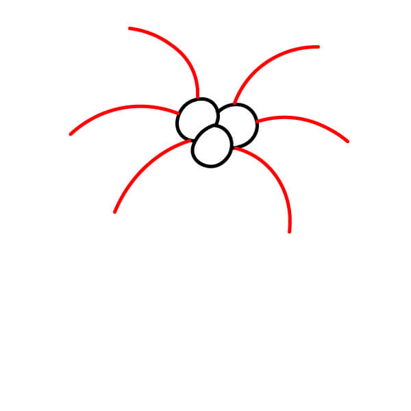 Dibuja varias líneas curvas que salgan desde el grupo de círculos hacia afuera. Estas líneas serán los tallos centrales de las hojas de la palmera.