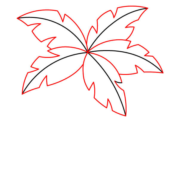 Usa las líneas del paso anterior para dibujar el contorno completo de las hojas de la palmera, dándoles un borde afilado y dentado.