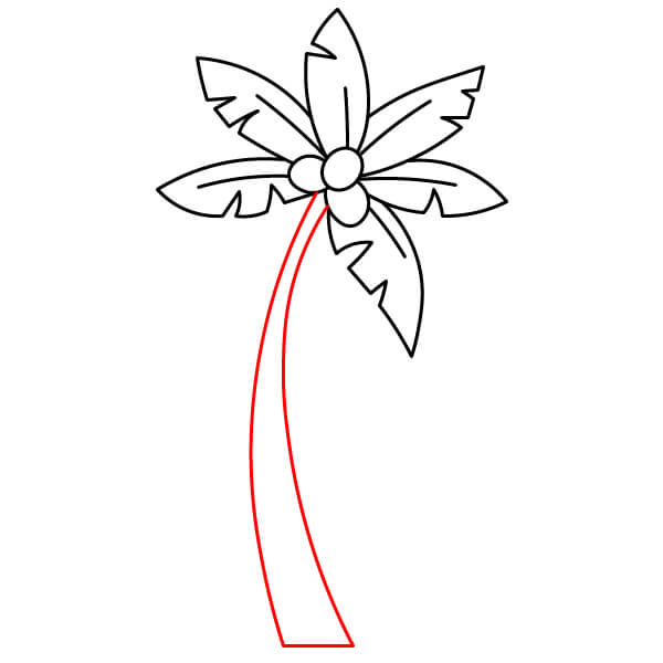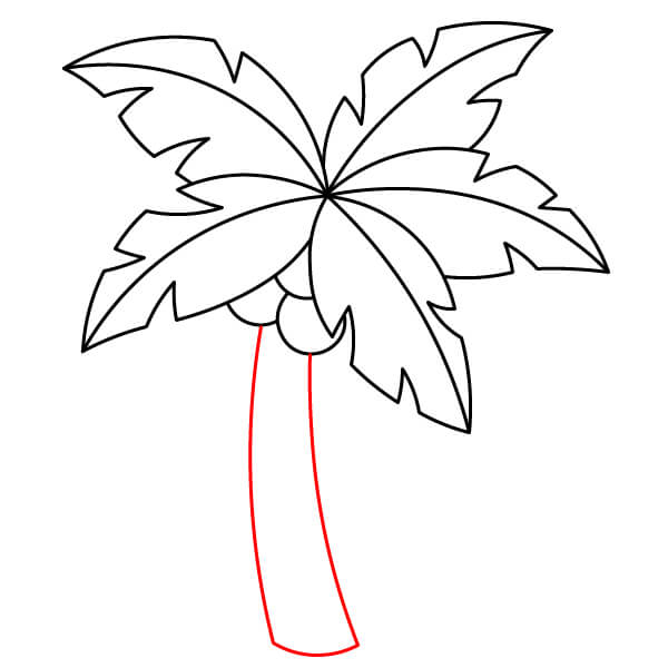Desde la base de los cocos, dibuja dos líneas largas y curvas que formen el tronco del árbol. El tronco debe ser más ancho en la parte inferior y más estrecho en la parte superior.