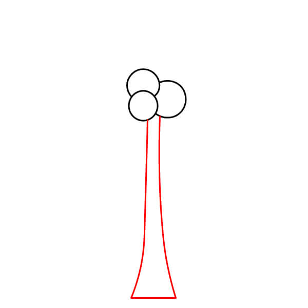 Empieza dibujando tres círculos superpuestos en la parte superior de tu área de dibujo. Estos serán los cocos.