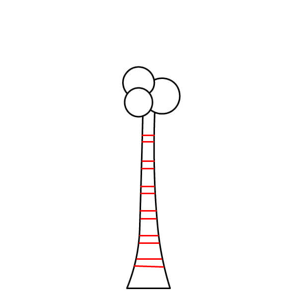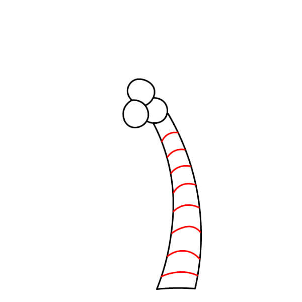 Dibuja una serie de segmentos conectados, algo rectangulares o ligeramente curvos, colocados uno sobre otro. El tronco debe estrecharse un poco a medida que sube hacia las hojas.
