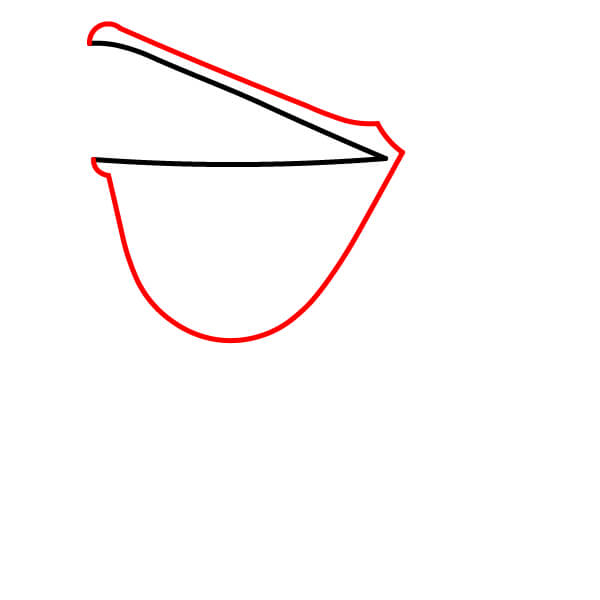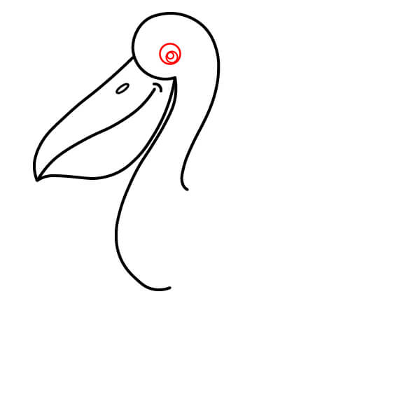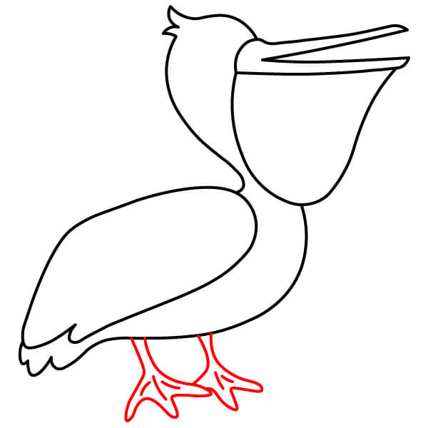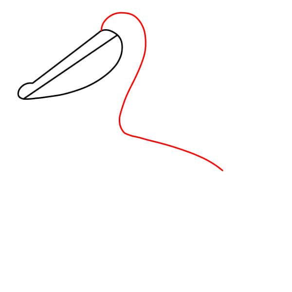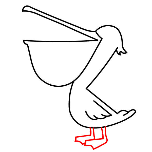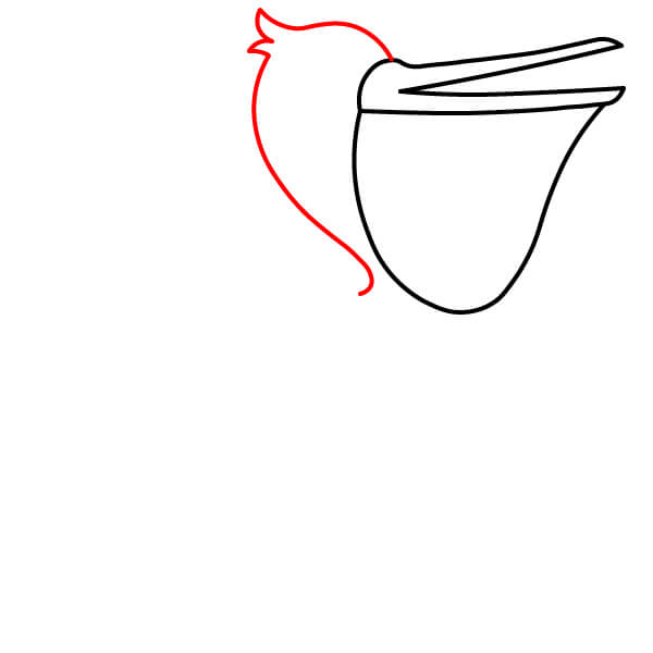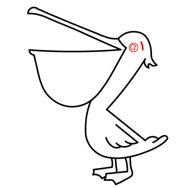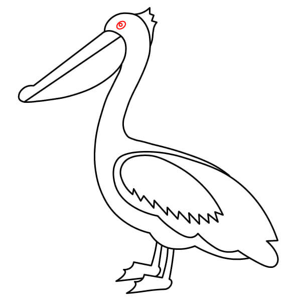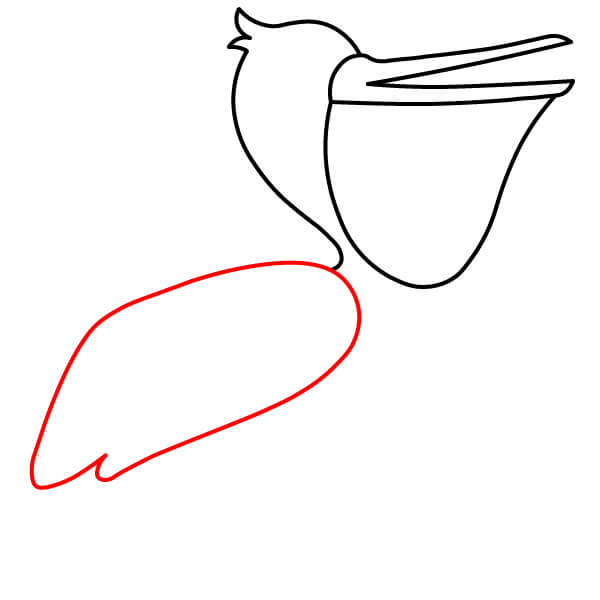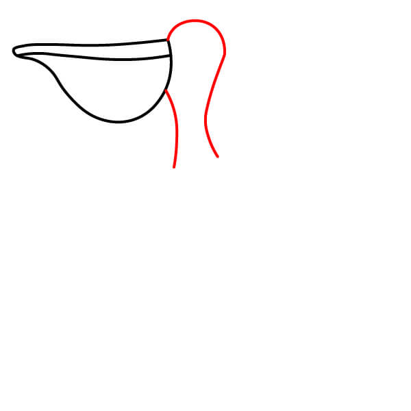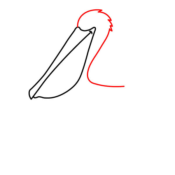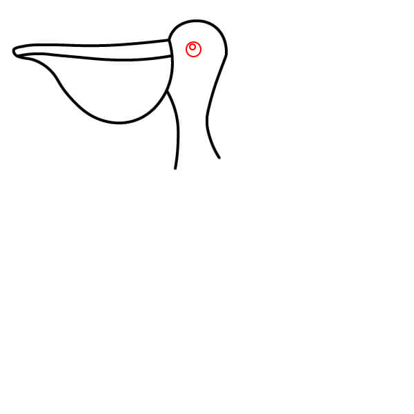 Comienza dibujando el característico pico largo con la gran bolsa inclinada hacia abajo debajo de la mandíbula inferior. El pico superior debe tener una línea divisoria.