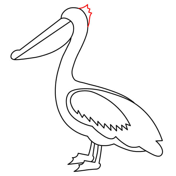 Dibuja una pequeña línea en zigzag puntiaguda en la parte superior trasera de la cabeza para representar una pequeña cresta o mechón de plumas.
