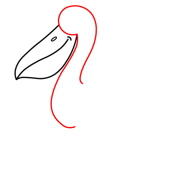 Dibuja una forma suave y redondeada sobre la parte posterior del pico para la cabeza. Luego, dibuja dos líneas curvas y elegantes que se extienden hacia abajo para formar el cuello largo en forma de S.