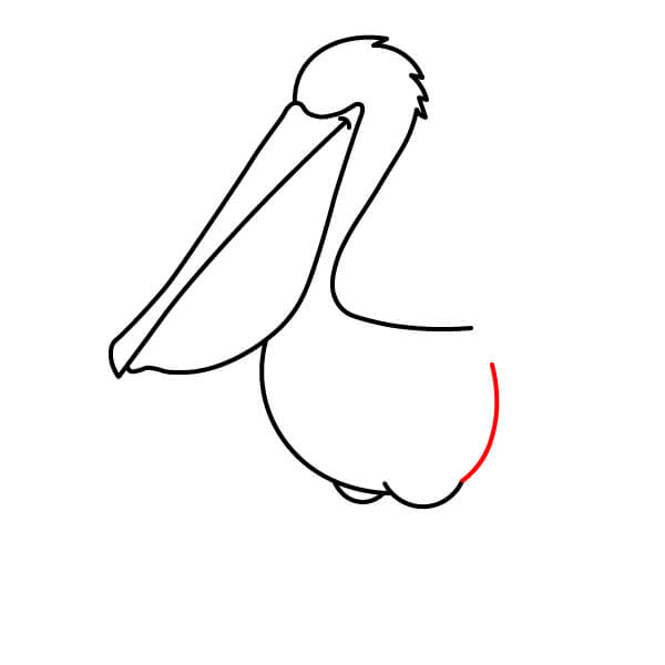 Dibuja dos pequeñas curvas redondeadas debajo del cuerpo. Estas representarán la parte superior de las patas, ya que el pelícano está dibujado en posición de descanso o sentado.