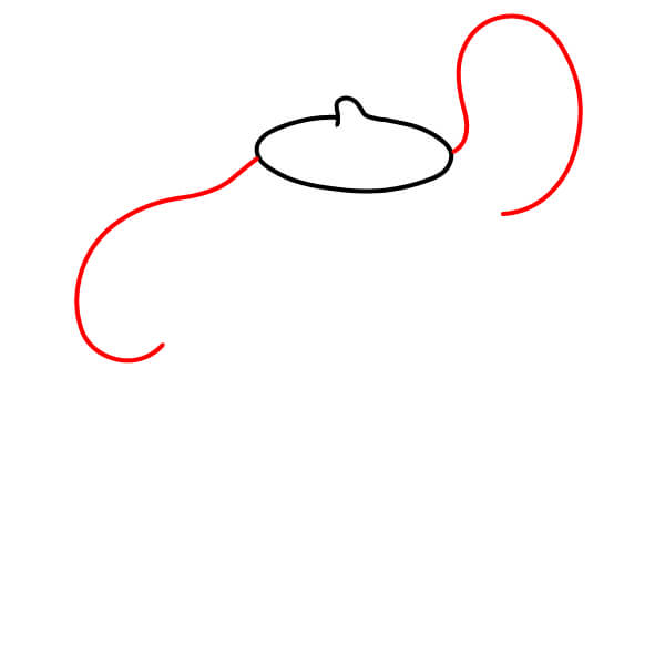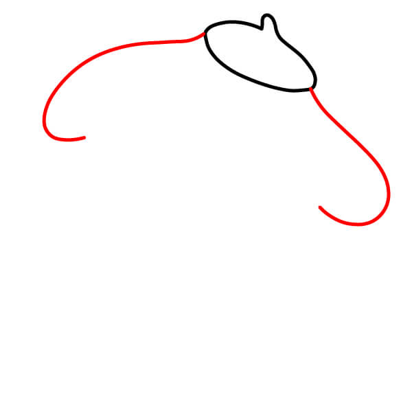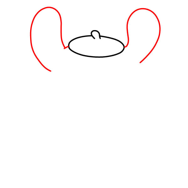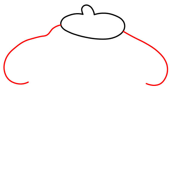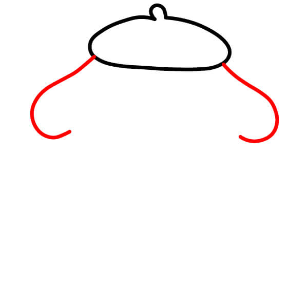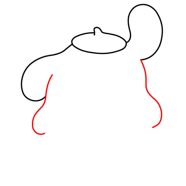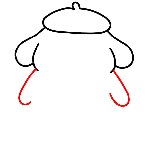 A ambos lados de la boina, dibuja una línea curva que se extienda hacia abajo y ligeramente hacia afuera, como el comienzo de las orejas caídas de Pompompurin.