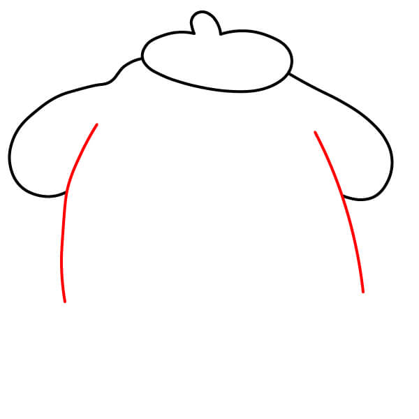 Dibuja dos líneas largas y curvas que bajen desde la parte inferior de las orejas. Estas formarán los lados del cuerpo regordete de Pompompurin.
