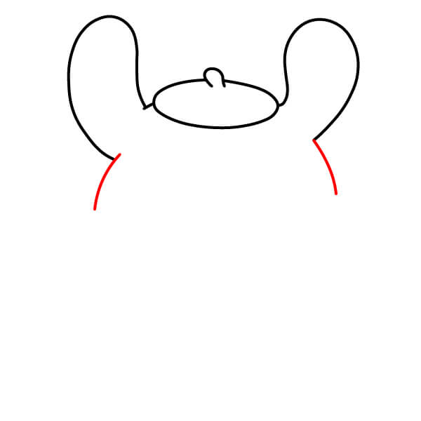Dibuja dos líneas cortas y curvas que se extiendan hacia abajo desde la parte inferior de las orejas. Estas comenzarán a formar los lados del cuerpo de Pompompurin.