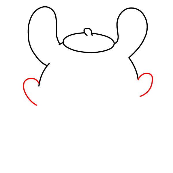 Debajo de las orejas, dibuja dos líneas largas y curvas que se extiendan hacia abajo. Estas formarán las manos de Pompompurin.