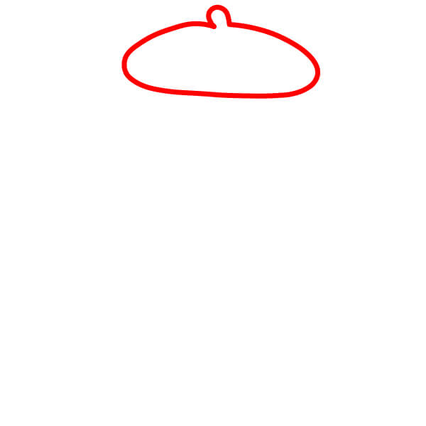 Empieza dibujando una forma ovalada con una pequeña protuberancia en la parte superior. Esta será la boina de Pompompurin.