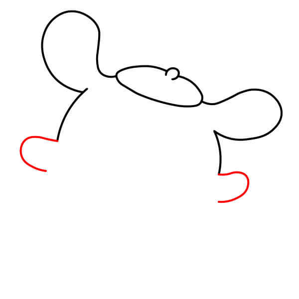 Conecta la parte inferior del cuerpo con una línea larga y curva, formando la silueta completa del cuerpo. Añade dos pequeñas formas redondeadas en la parte inferior para sus pies.