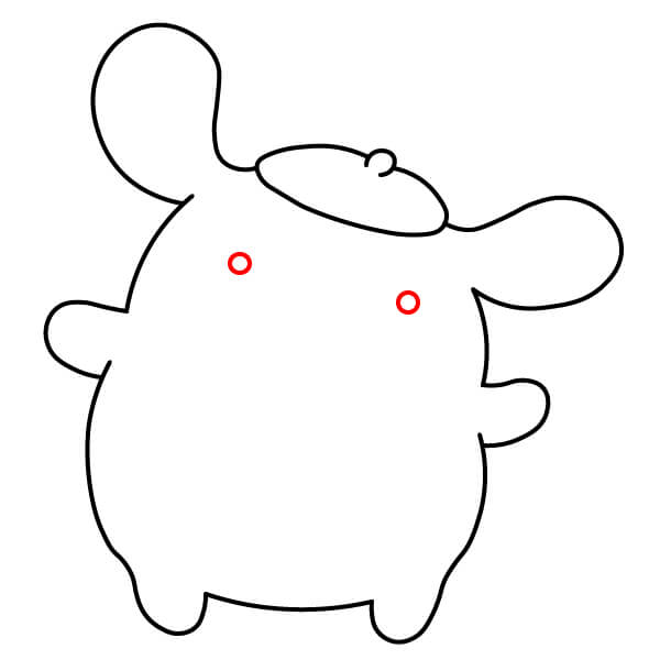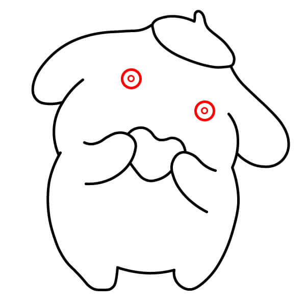Dibuja dos pequeños círculos para los ojos de Pompompurin.